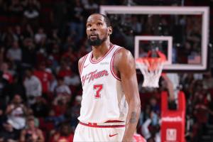 前三节结束时,火箭还以96-73领先76人23分。当时杜兰特被换下场休息,有望三节打卡。结果末节火箭场上球员表现太抽象,被76人轰出一波进攻高潮追到11分,直接把杜兰特打了回来。76人攻击波还在继续,把分差缩小到7分,杜兰特命中三分+助攻阿隆·霍勒迪投进三分,为火箭稳住局面。